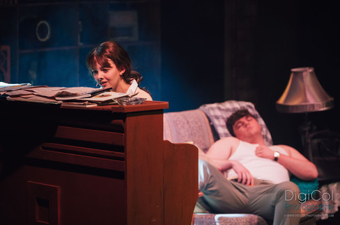 Another top-notch performance came from Pádraic Dí Fusco, as Barry Mann, hilarious in his hypochondria, sincere in his love for Cynthia, delightfully competitive with his writing, and vocally brilliant in the delivery of all his songs. From the gentle, melodic sincerity of Walking in the Rain to the powerhouse Rock delivery of the Animals hit, We Gotta Get Out of This Place, his vocals were superb, and he was just totally believable in his character. Very well-played.