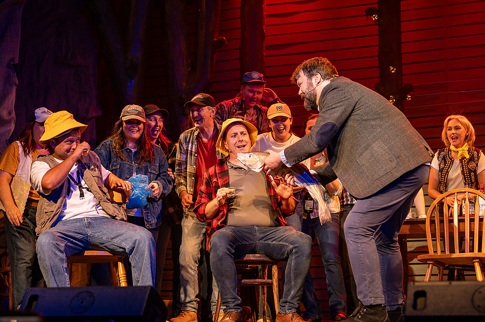 Director Aoife McClafferty’s approach was confident, cohesive, and full of life. She shaped the piece with a smooth, flowing rhythm that mirrored the heartbeat of the small Newfoundland town at its centre. The pacing was superb, never sluggish, never rushed. Each transition, each shift in mood or location, was clean and deliberate, maintaining the sense of a community constantly in motion but never out of control. Her attention to character detail was one of the most impressive aspects of the production. Even in a show where actors play multiple roles, every individual felt real, distinct, and necessary.