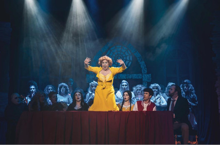 hairpieces. Grandma was nicely aged, Wednesday and Pugsley were suitably pale and gaunt, Fester was quirky and creepy, Marticia was cadaverous but with a certain sexiness, Gomez looked every bit the Latin Lothario, Lurch was just plain scary, and the Chorus looked suitably haggard and ghostly. Very good work from the make-up team.